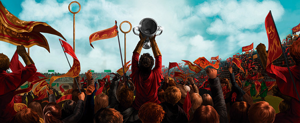 Caneca branca de cerâmica com arte “Harry Potter – Quadribol” preenchendo ambos os lados. Por se tratar de uma peça artesanal a mesma pode apresentar leves diferenças da imagem.