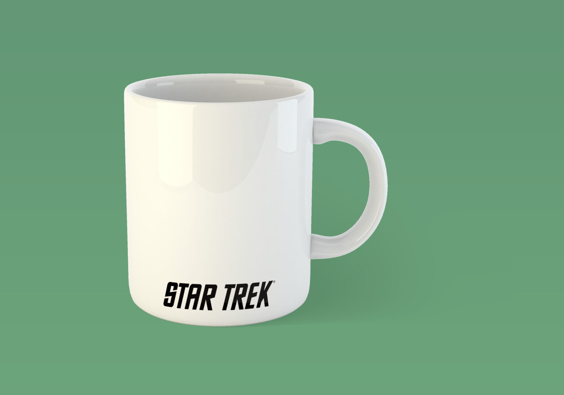 Caneca branca de cerâmica com arte “Star Trek” em um dos lados e o logo da “Federação” do outro. Por se tratar de uma peça artesanal a mesma pode apresentar leves diferenças da imagem.